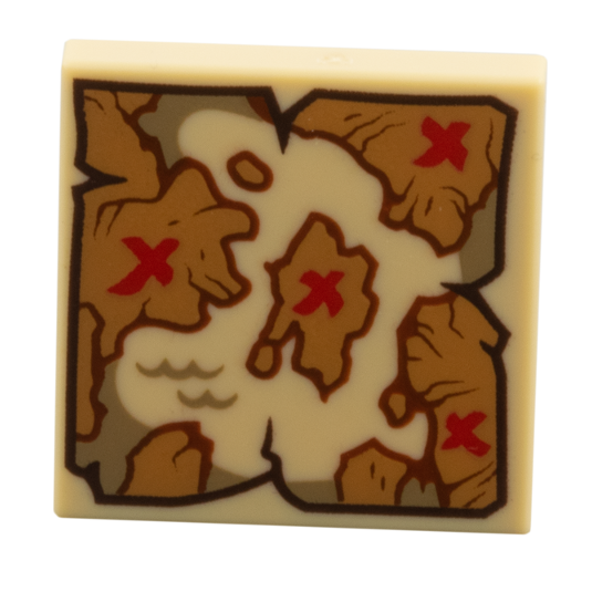 레고부품 Tan Tile 2 x 2 with Map, Medium Nougat Islands on Tan Sea, 4 Red 'X' Pattern (3068pb2778)